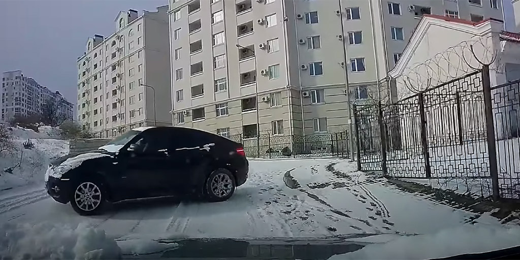 A BMW úgy csúszott lefelé a lejtőn, mint amit semmi és senki nem állíthat meg, a kamerás autó vezetőjének azonban szerencsére volt egy jó ötlete.