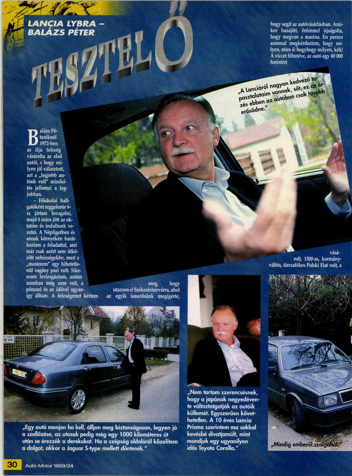 A tegnap elhunyt Balázs Péter részletesen mesélt az Autó-Motornak autós tapasztalatairól és érzelmeiről. A 26 évvel ezelőtti cikkből kiderült, hogy első autóját felesége vásárolta még 1972-ben, mégpedig 40 ezer forintért. Az 1500-as, kormányváltós, tárcsafékes Nagypolszki igazi kedvenc maradt, még akkor is, ha később Zsigulik és Ladák sora, majd olasz autók, Lancia és Fiat következtek.