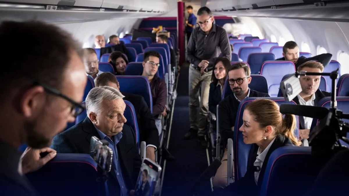 A miniszterelnök hivatalos közösségi oldalán megosztott videójában az látható, hogy Orbán Viktor és a vele utazó újságírók a Washingtonba tartó repülőúton munkával töltötték az időt.