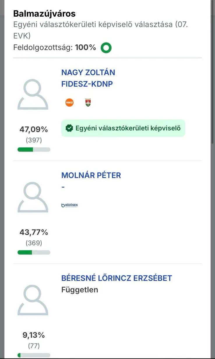 A 17 ezres Hajdú-Bihar vármegyei Balmazújváros egyik egyéni választókerületében sorsdöntő időközi választást tartottak. A Magyar Nemzet szerint, a településen 2024 júniusa óta a helyi képviselő testületben a polgármesterrel együtt, tizenketten foglaltak helyet, közülük hatan a Fidesz–KDNP színeiben politizáltak, hatan pedig a Közösen Balmazújvárosért Egyesület tagjai voltak. A helyzet azonban most, a kormánypártok jelöltjének győzelmével alapvetően változott meg.