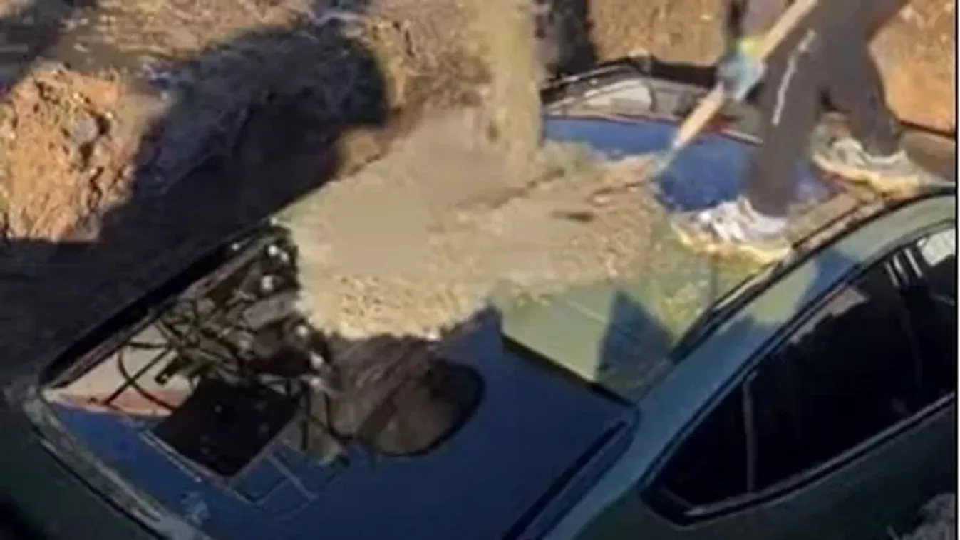 Megáll az ész, 70 milliós BMW-t betonoztak be egy gödörbe!