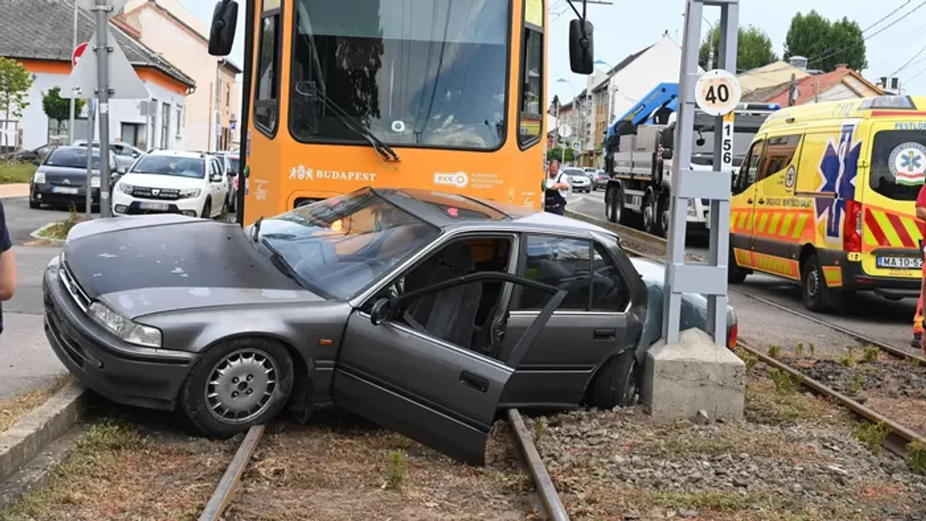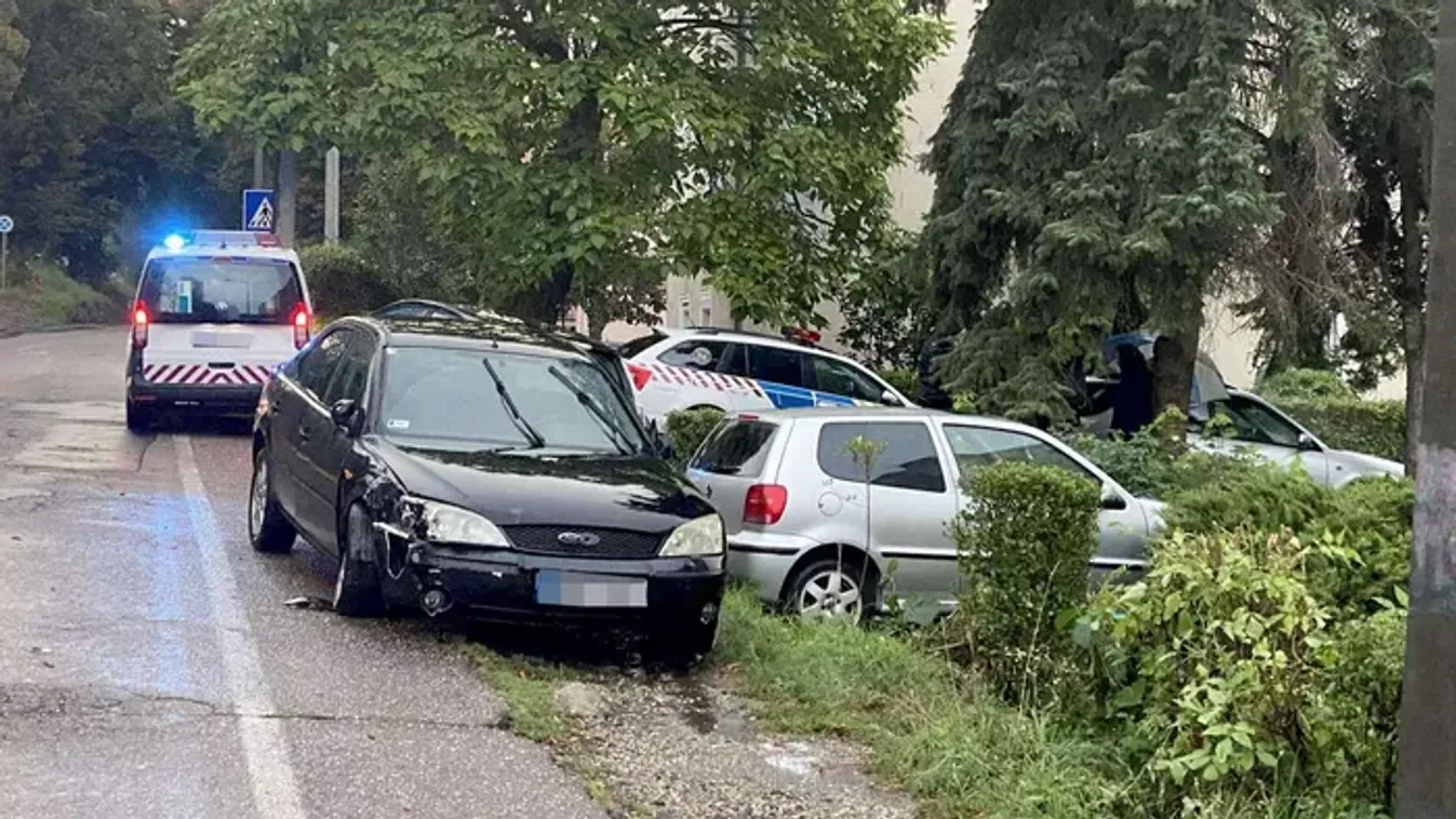 Szalagkorlátba csapódott egy autó, szanaszét repültek a karosszéria-darabjai.