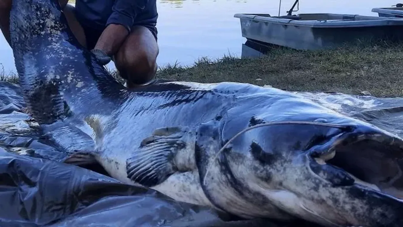 Gigantikus harcsa akadt a horogra.