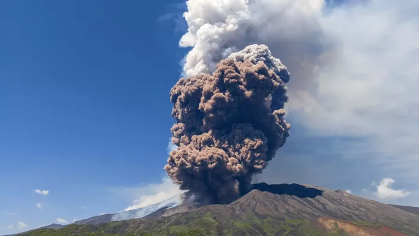 Olaszország 2025. 06. 03.Látványos videón, ahogy kitört az EtnaA robbanástól beomlott a szicíliai vulkán egyik krátere hétfőn.