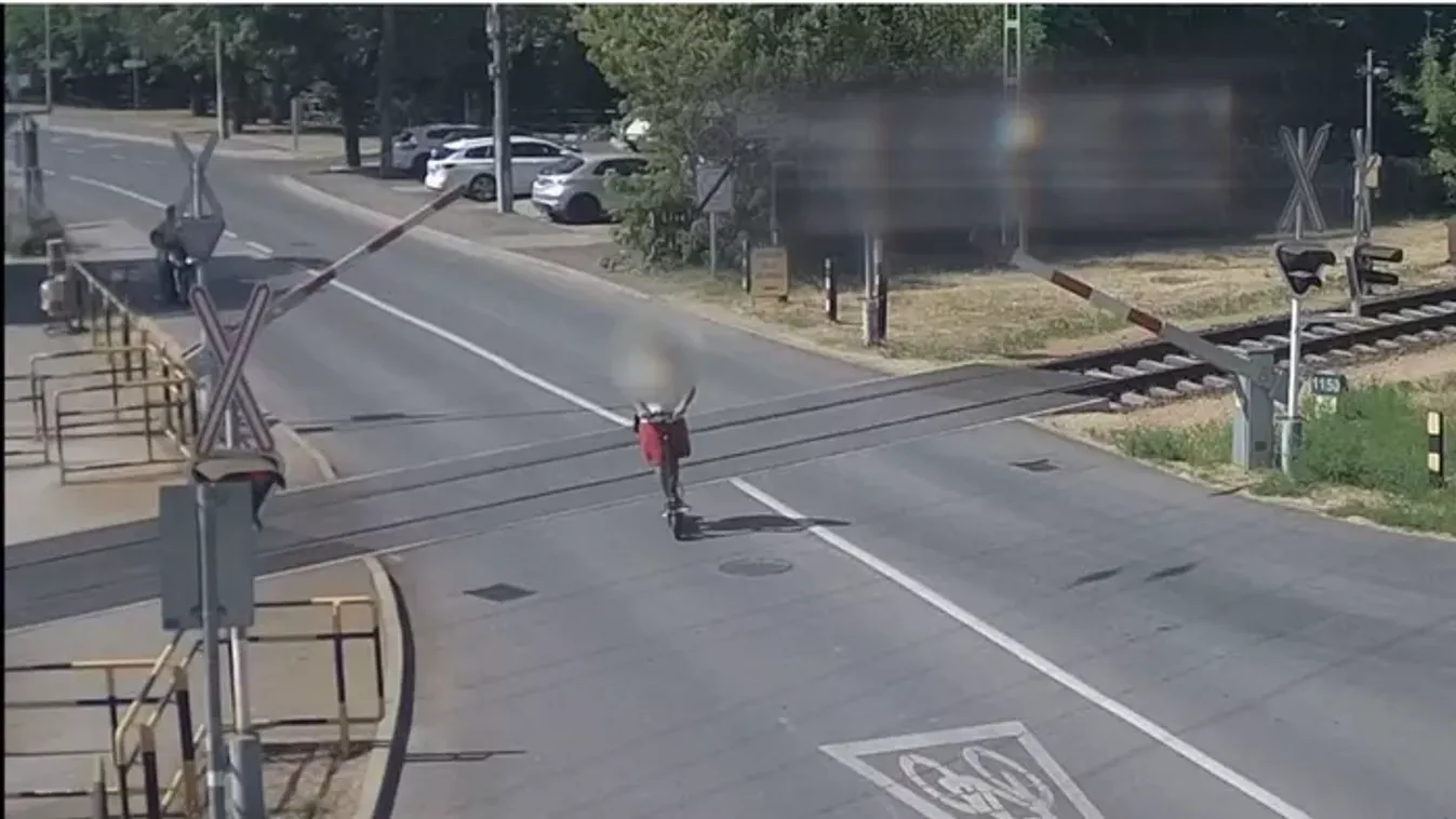 Csaknem a rolleres fejére zuhant a félsorompó a vasúti átjáróban.