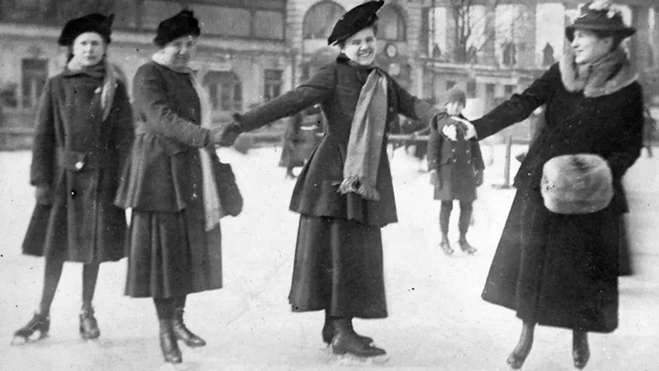 Vidám siklások a jégen, fotók a magyarországi korcsolyázás hőskorából.