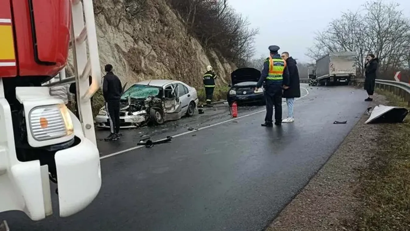Két személyautó és egy teherautó ütközött.