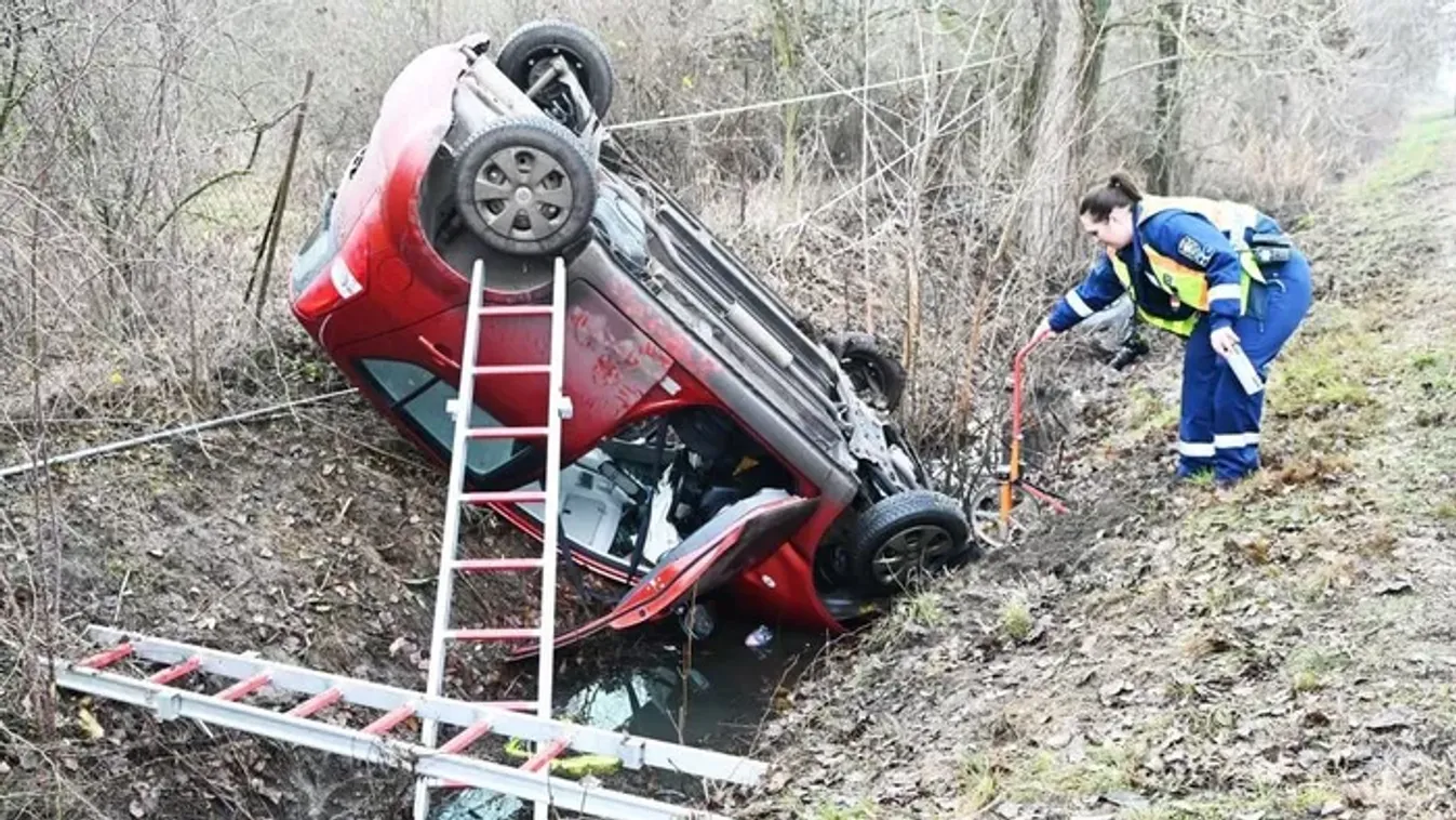 Lesodródott az útról, majd az árokba borult egy gépkocsi.