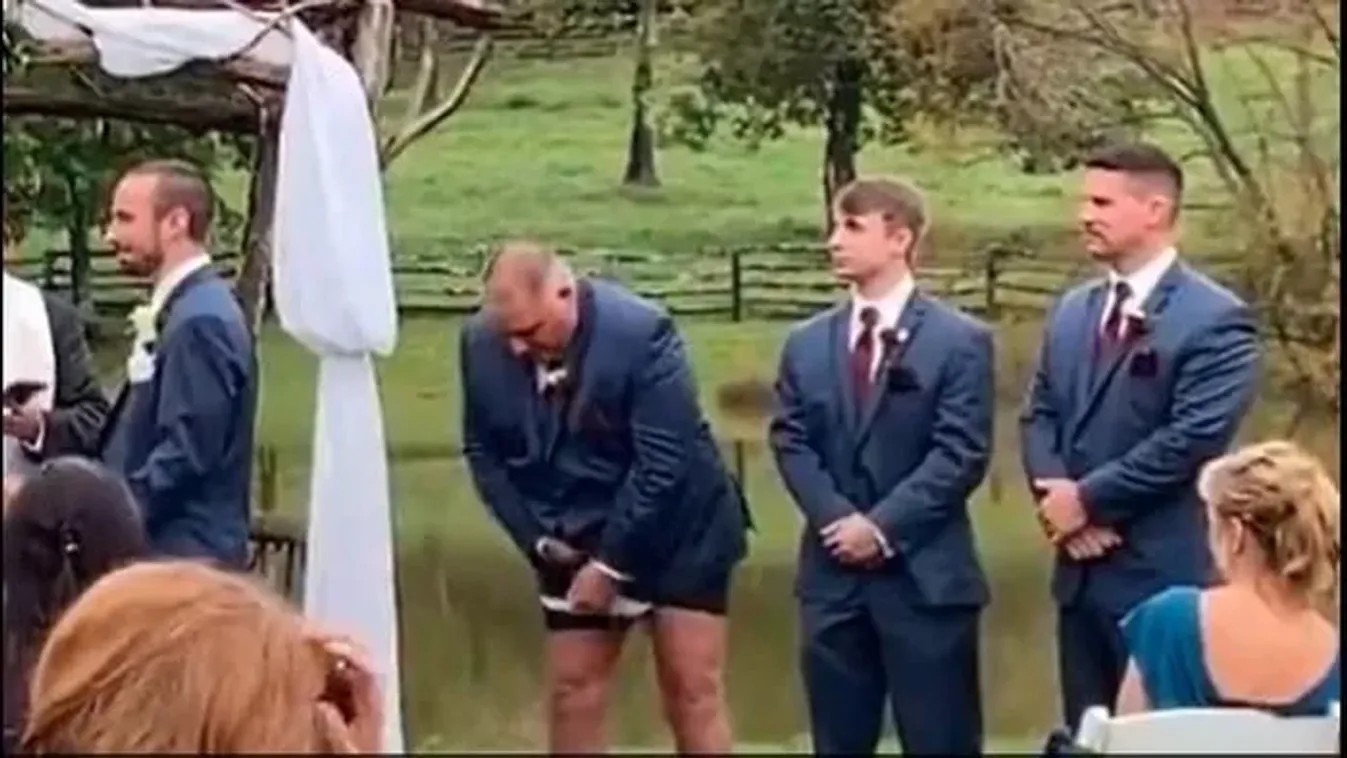 Az esküvő kellős közepén esett le a nadrág a tanúról – videón a baki
