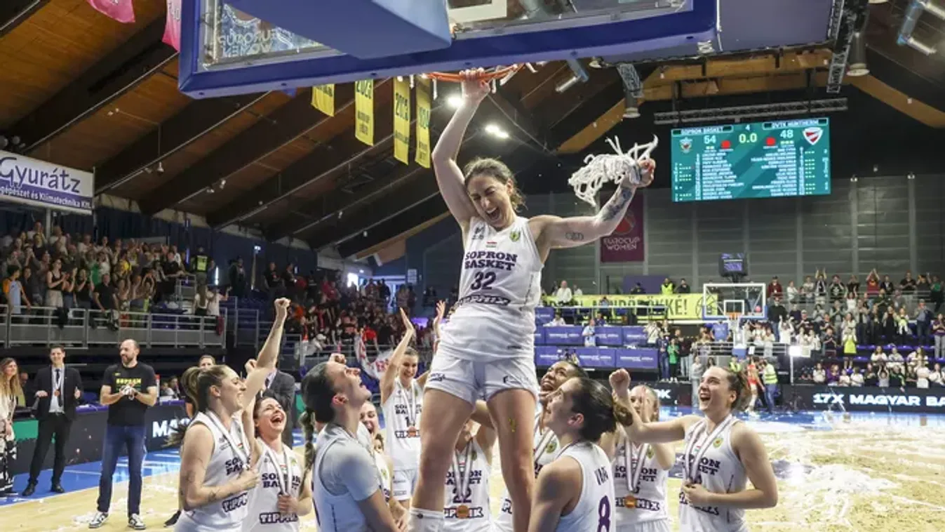 A soproniak a tizenhatodik bajnoki címüket szerezték a női kosárlabda-bajnokságban, majd őrült ünneplésbe kezdtek Gáspár Dávid játékosai.