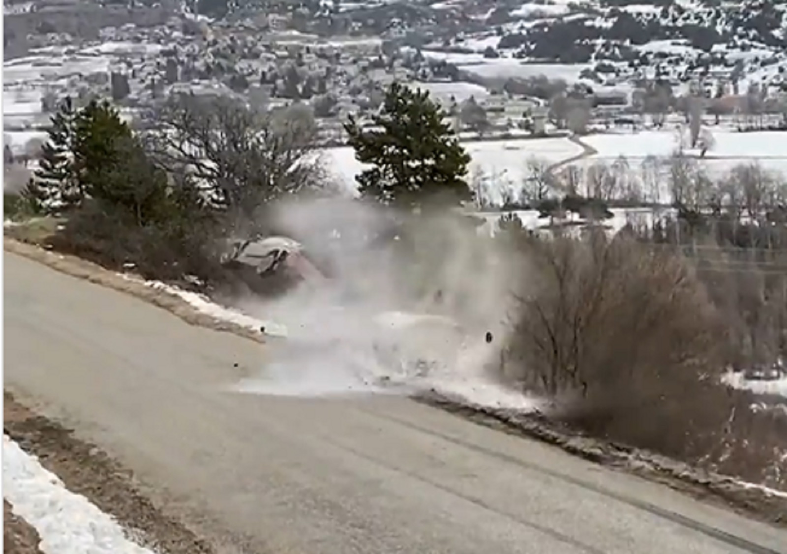 A 2019-es világbajnok Tänak a szombat esti 10. szakaszon egy defektet követően sodródott le az útról az autójával, amely meg is pördült a levegőben, a fát is letarolta, mielőtt a földbe csapódott. Az esetet még nézni is szörnyű, de szerencsére az elképesztő baleset ellenére az észt versenyző és a navigátora, Martin Järveoja is épségben szállt ki az összetört autóból, egyiküknek sem esett komoly baja.