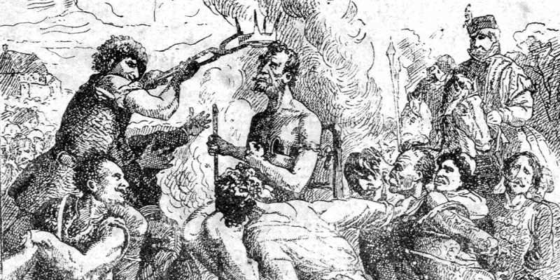 A történelem egyik legszörnyűbb kivégzése során a saját kiéheztetett hívei ettek a parasztháború vezérének testéből. Hasonlóra már a fekete seregben is volt példa.