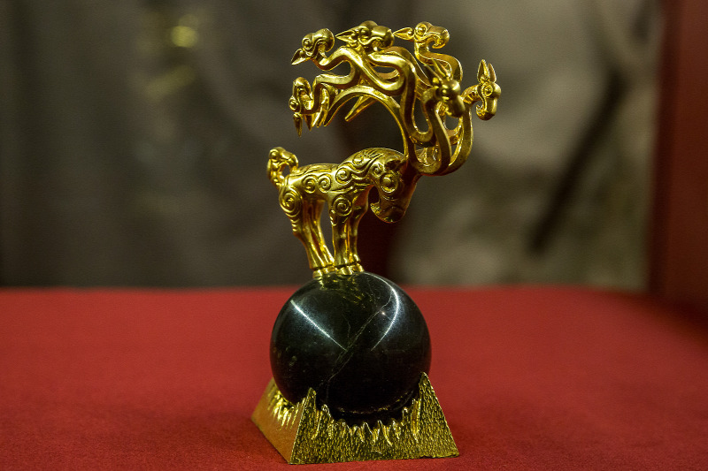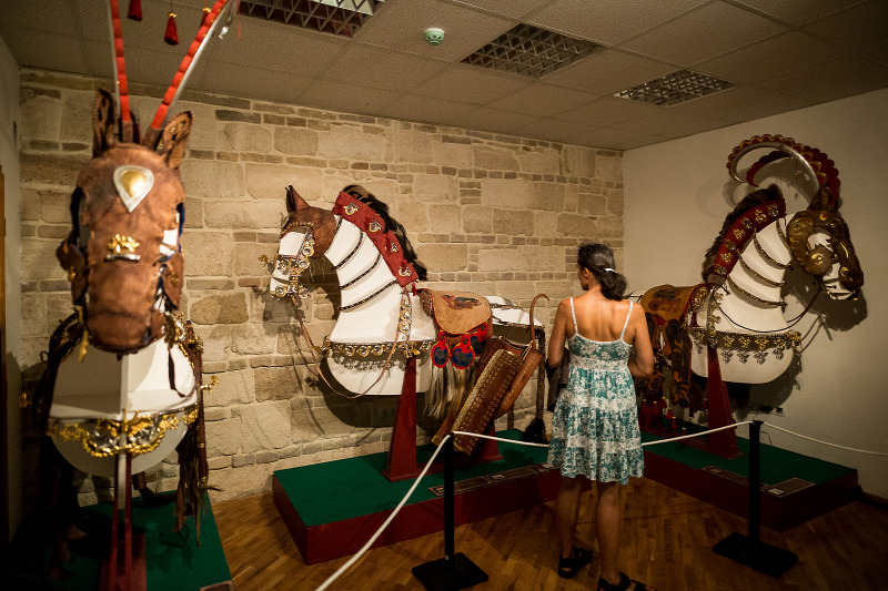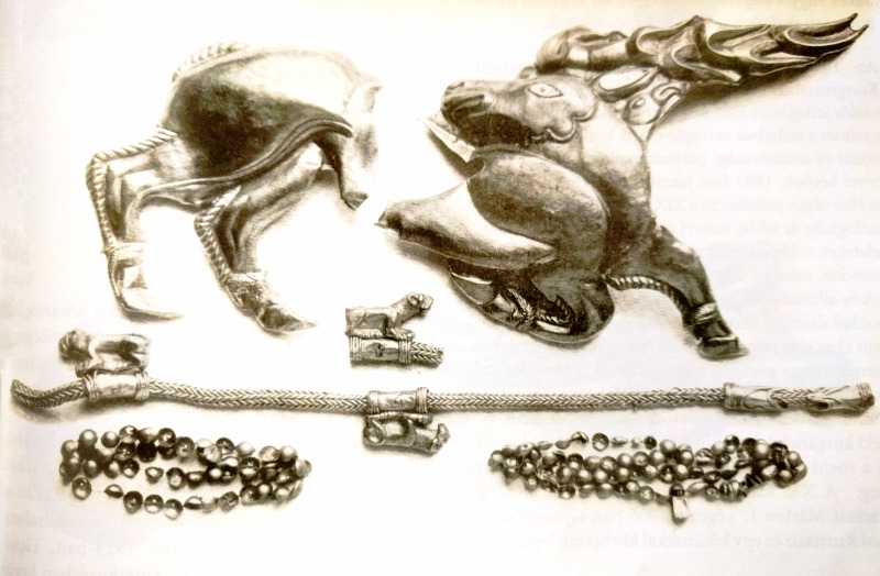 A dombon álló harcos aranyöltözete mellett, lovának díszes „ruhája", és megannyi csillogó emlék látható az üvegek mögött. Arany griff, turul és holló forma, amely mind misztikus állatnak számított.