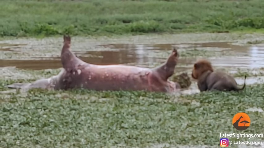 A víziló azonban még a halála után is tudott kellemetlen meglepetést okozni az oroszlánoknak. A bomlás miatt a testében felgyülemlett gáz pont az egyik ragadozó képébe robbant.